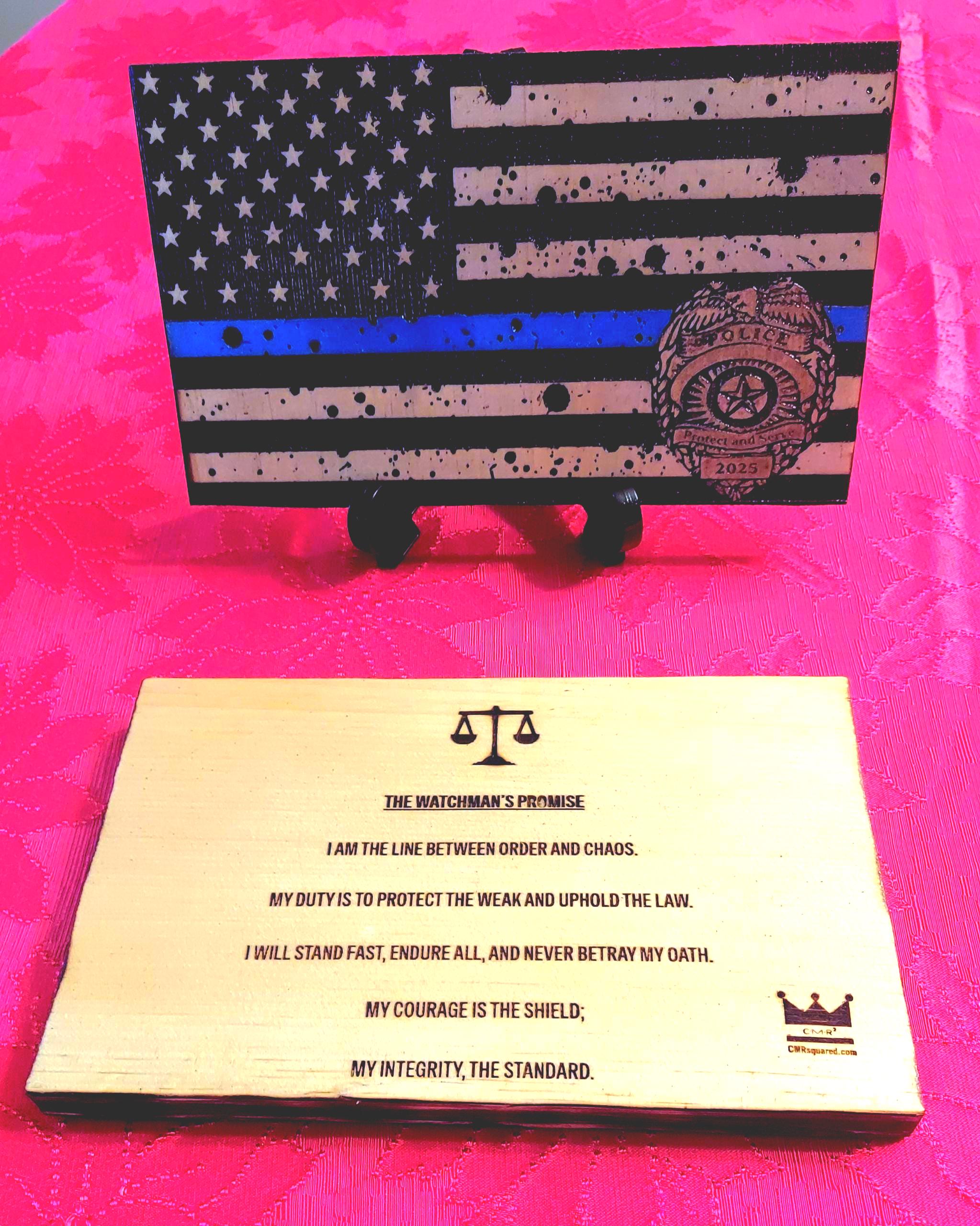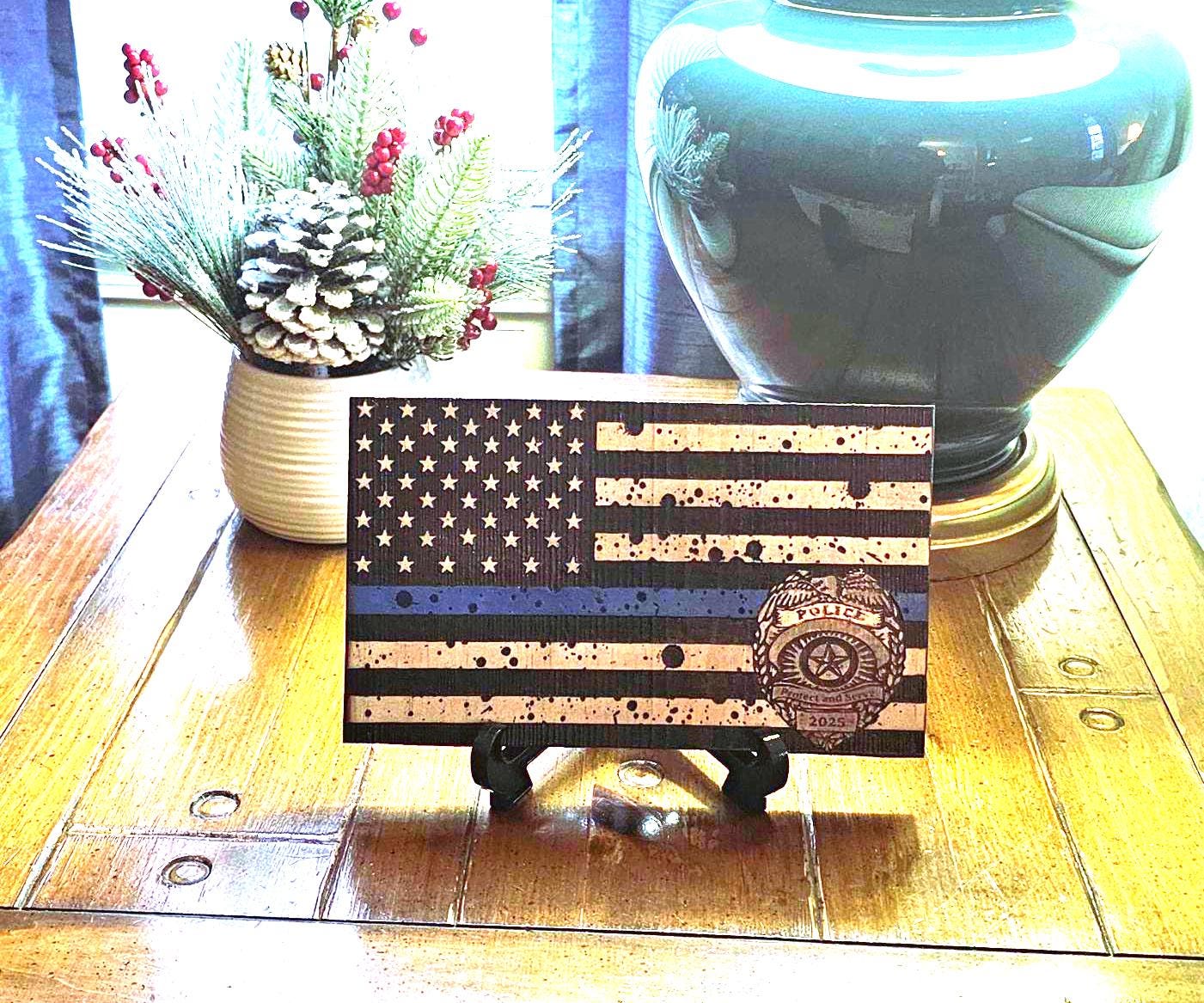 Display this piece proudly in your home, office, or department setting as a reminder of the heroes who keep our streets safe and protect our nation from within. Whether purchased for yourself, gifted to an officer, or given to a family who serves — this engraving stands as a timeless symbol of gratitude, respect, and support for those who defend and protect our citizens.